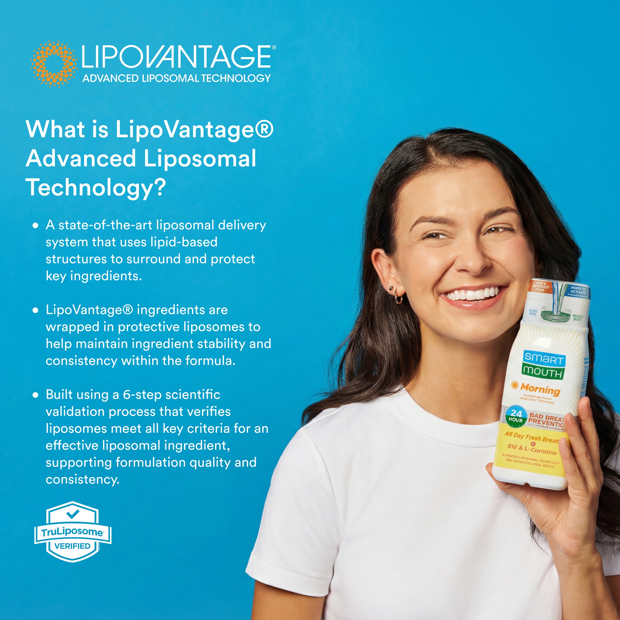 - 24-Hour Bad Breath Prevention: Powered by our patented Smart-Zinc™ Technology—now enhanced with advanced liposomal technology—SmartMouth instantly eliminates bad breath and prevents it from returning for a full 24 hours with just two rinses a day.