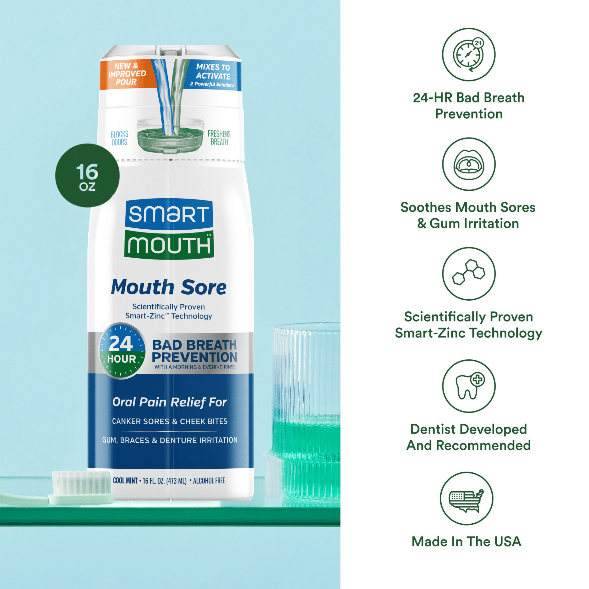 - 24-Hour Bad Breath Prevention: Powered by our patented Smart-Zinc™ Technology, SmartMouth instantly eliminates bad breath and prevents it from returning for a full 24 hours with just two rinses a day.